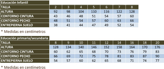 Guia de tallas – mel&mato :: uniformedecolegio.es